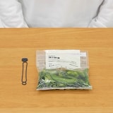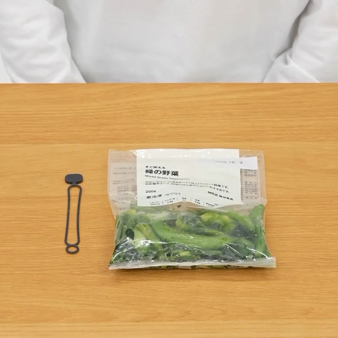 食材の袋止めや道具をまとめるシリコーン製の結束バンドです。湯せんから冷凍庫まで使用できます。