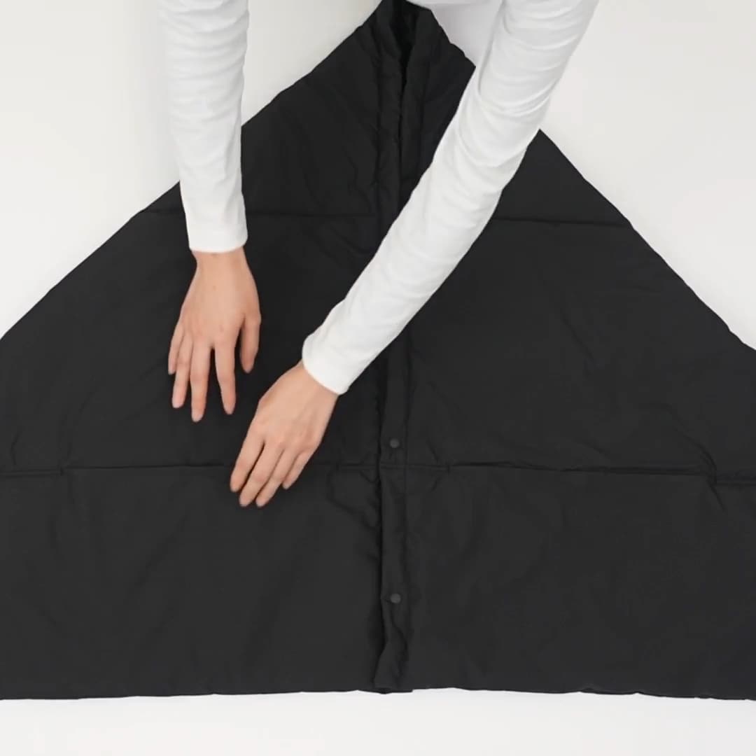吸湿発熱性のわたを使った旅にも携帯しやすいケープです。生地は撥水加工です。