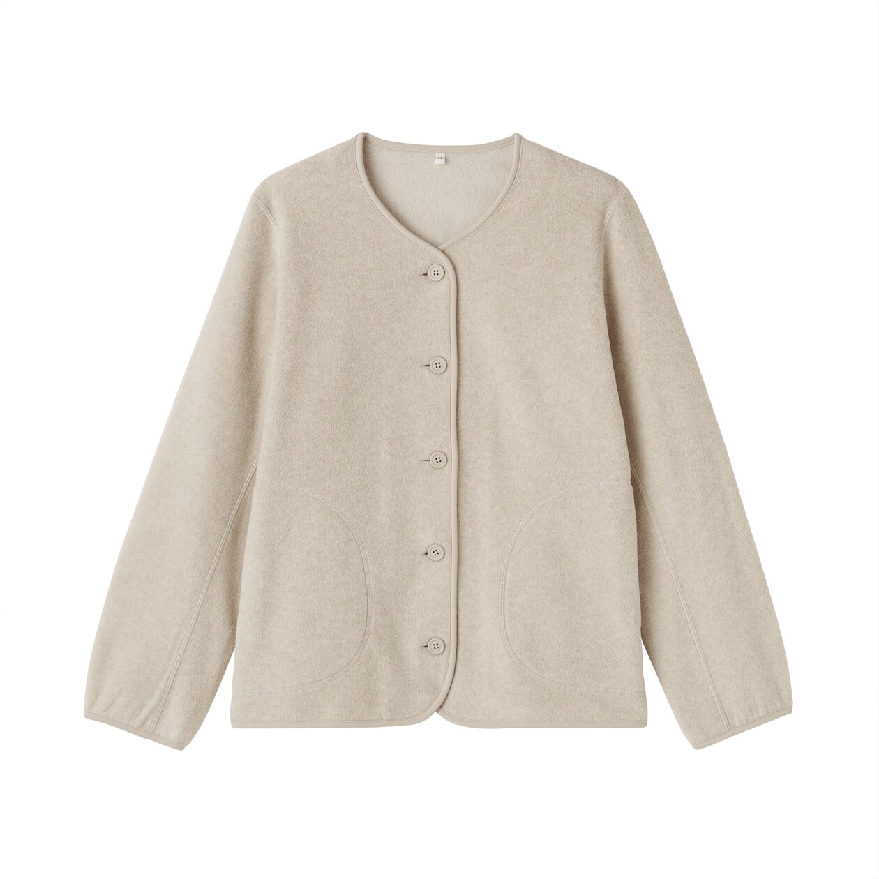 再資源化しやすいよう生地やボタンなどを単一素材でつくりました。軽くて暖かい一着です。