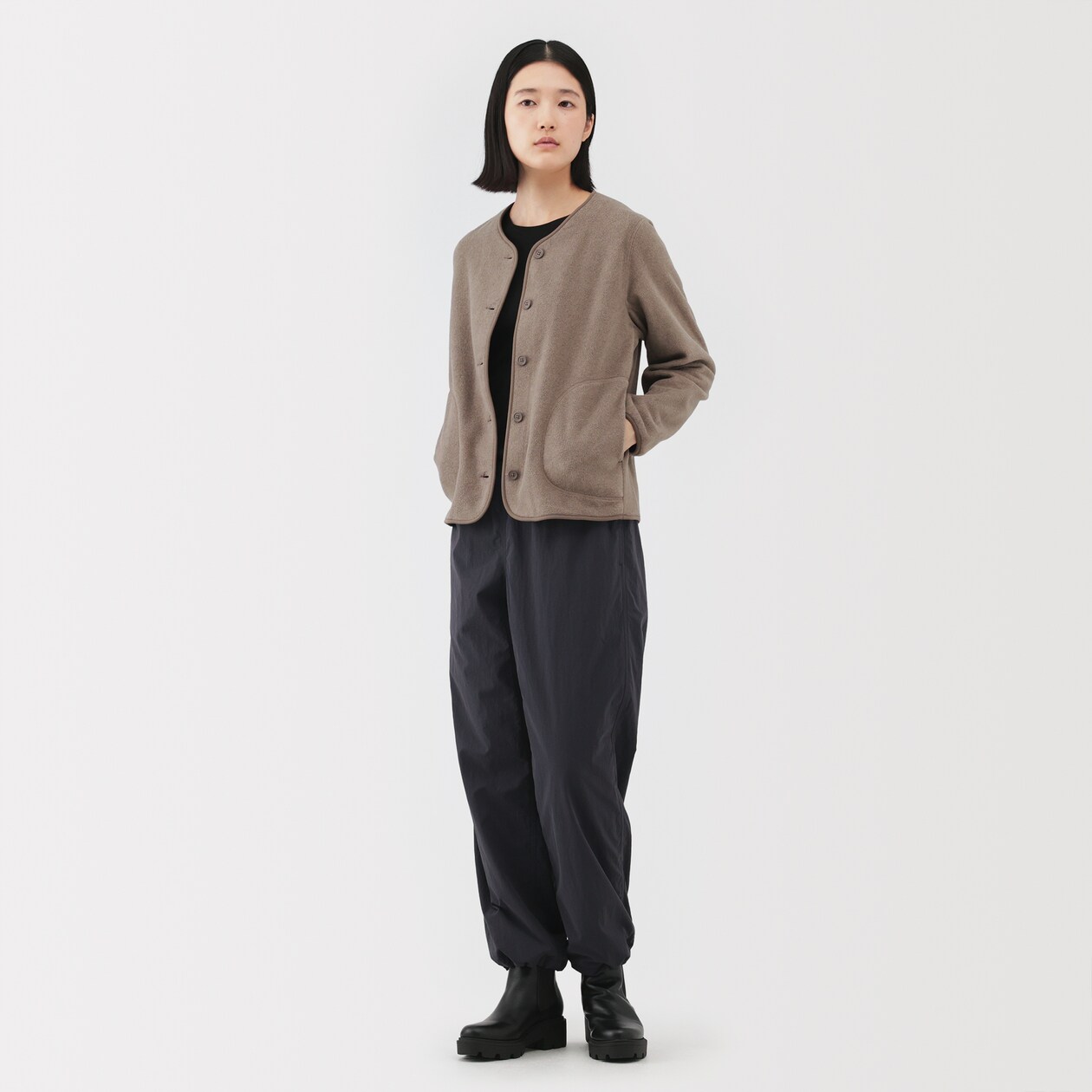 再資源化しやすいよう生地やボタンなどを単一素材でつくりました。軽くて暖かい一着です。