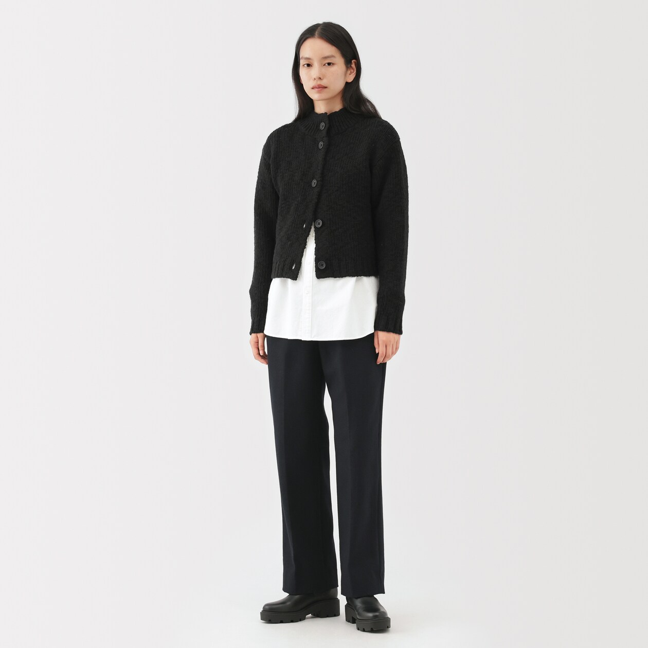 スラブ糸を使用した均一ではない表情が特長のローゲージセーターです。