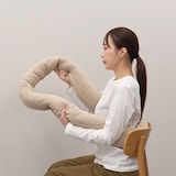 首に通して首当て・背当てにしたり、首に二重に巻いてネッククッションにしたり、腕に巻いてお昼寝用のクッションにしたり、さまざまな用途で使えるクッションです。