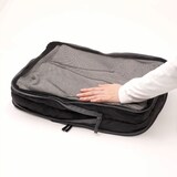 旅行の際にかさばる衣類などの整理に便利です。ファスナーを閉めることで圧縮できます。