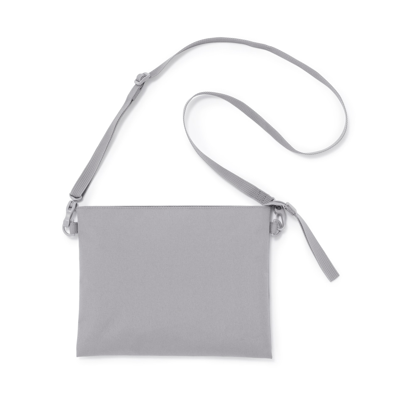ショルダーベルトを外してポーチとしても使えるサコッシュです。生地には再生素材を使用し、一部に撥水加工を施しました。