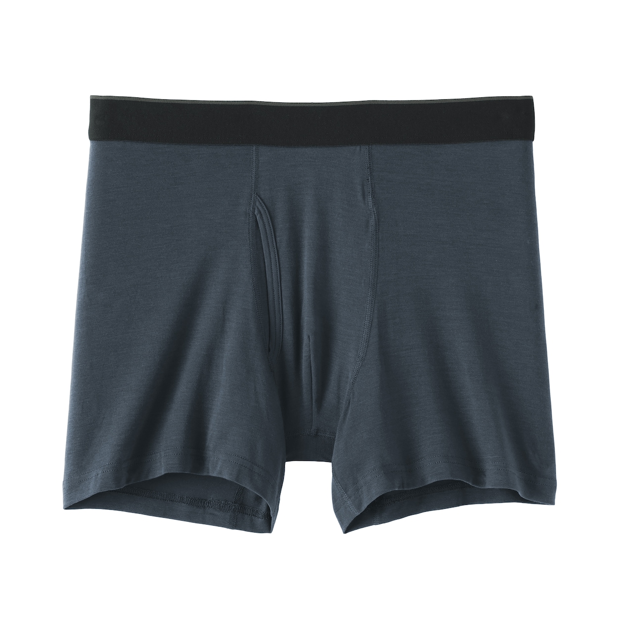 通気性のあるボクサーパンツです。締め付け感の少ないウエストゴムを使っています。なめらかな肌触りが特長です