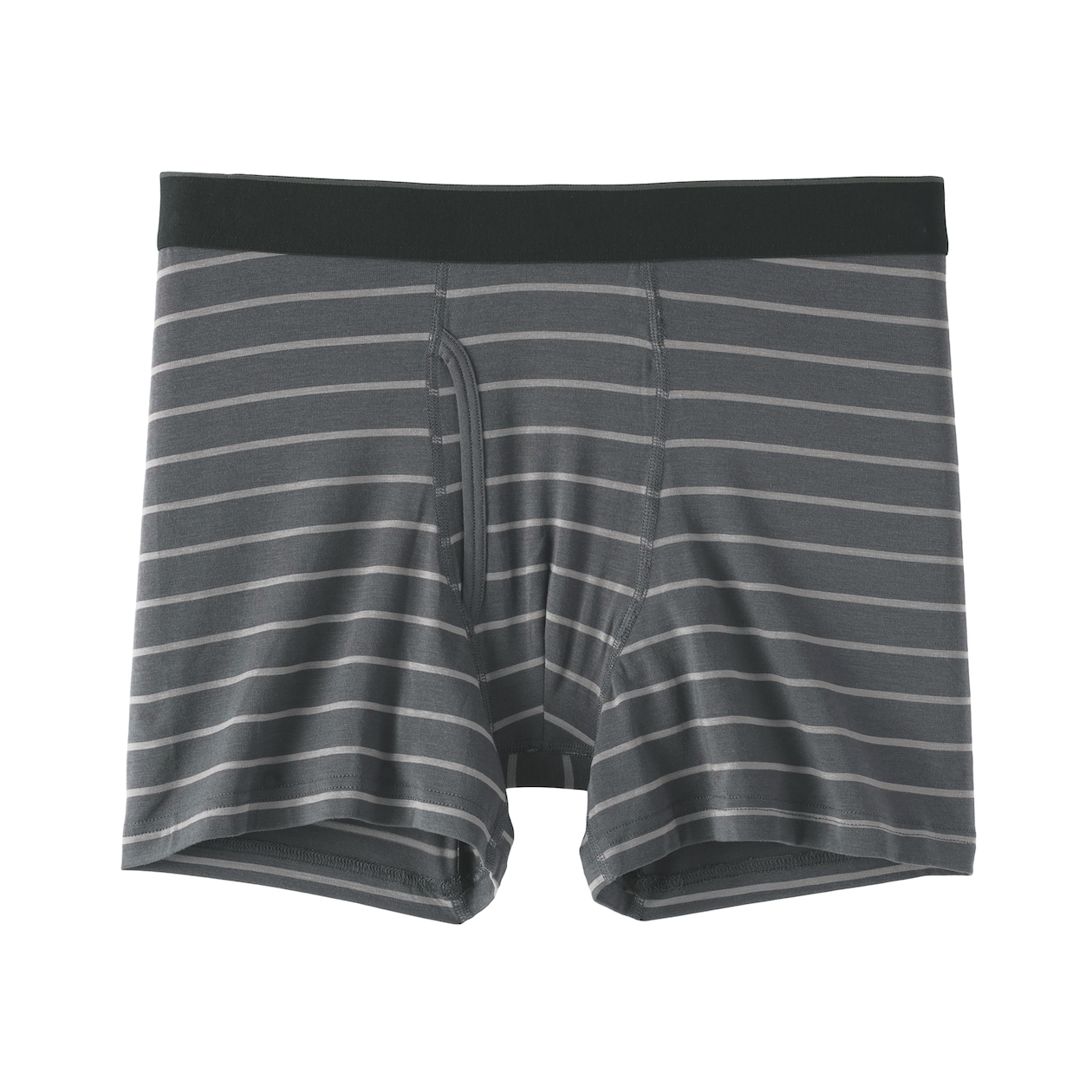 通気性のあるボクサーパンツです。締め付け感の少ないウエストゴムを使っています。なめらかな肌触りが特長です
