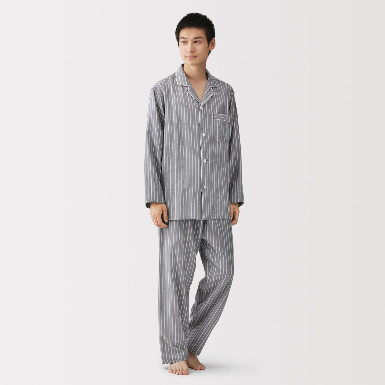 着心地を考え脇の縫い目をなくしやわらかな肌触りが特長です。綿はオーガニックコットンです。綿をやわらかく織りあげた二重ガーゼは、通気性にすぐれています。寝ている間にかいた汗を吸い取り、朝まで肌心地の良さを保つ、パジャマに最適な素材です。肌に刺激の少ないガーゼ組織で、甘く織ることによって軽くてやわらかく、二重なので中に空気層ができるのも特長です。季節を問わず、一年を通して着用いただける素材です。