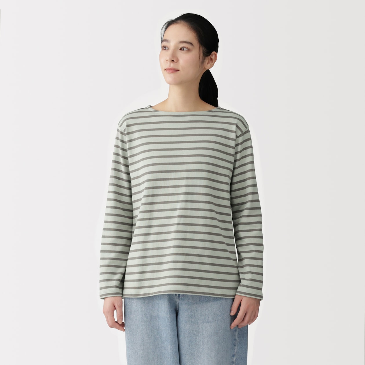毛羽立ちの少ない糸を使用したハリのある素材が特長です。綿はオーガニックコットンです。