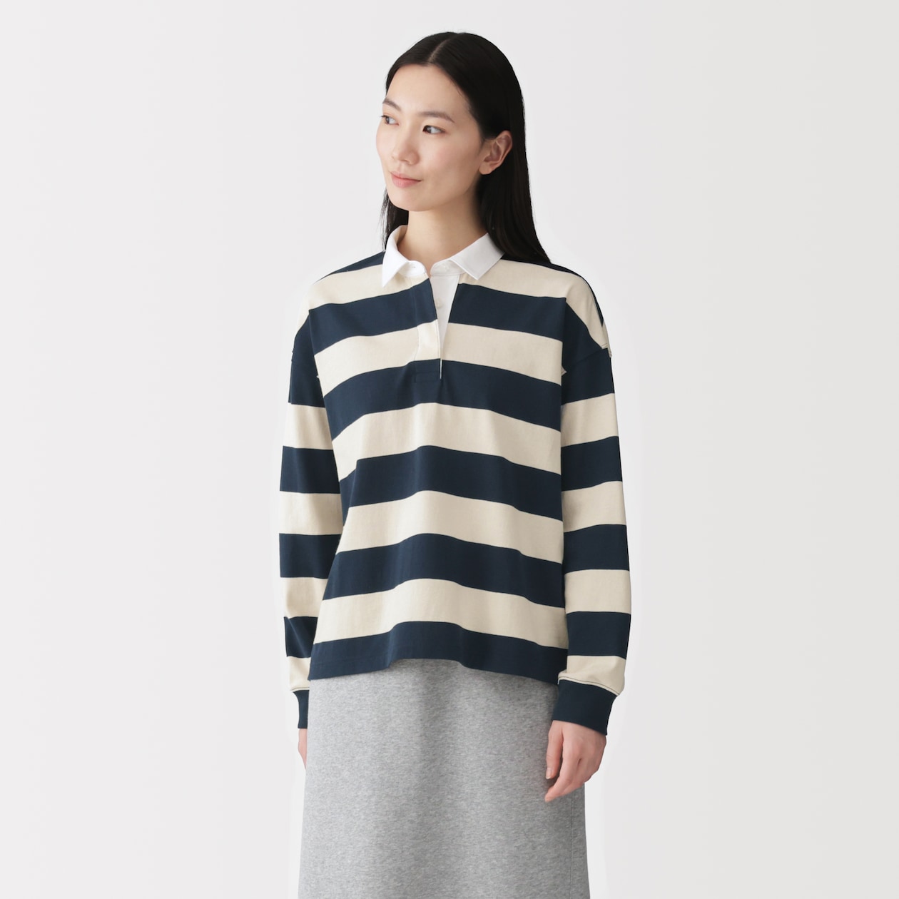二本の糸を引き揃えて編み立てた程よい厚みでハリのある素材です。綿はオーガニックコットンです。