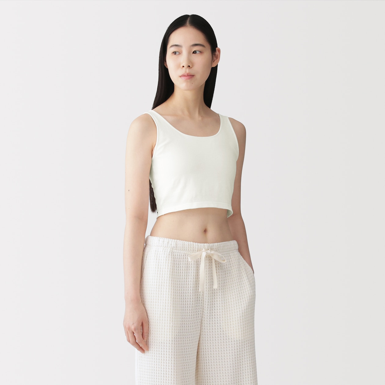 胸回りのパワーネットでバストのボリュームをおさえます。綿はオーガニックコットンです。