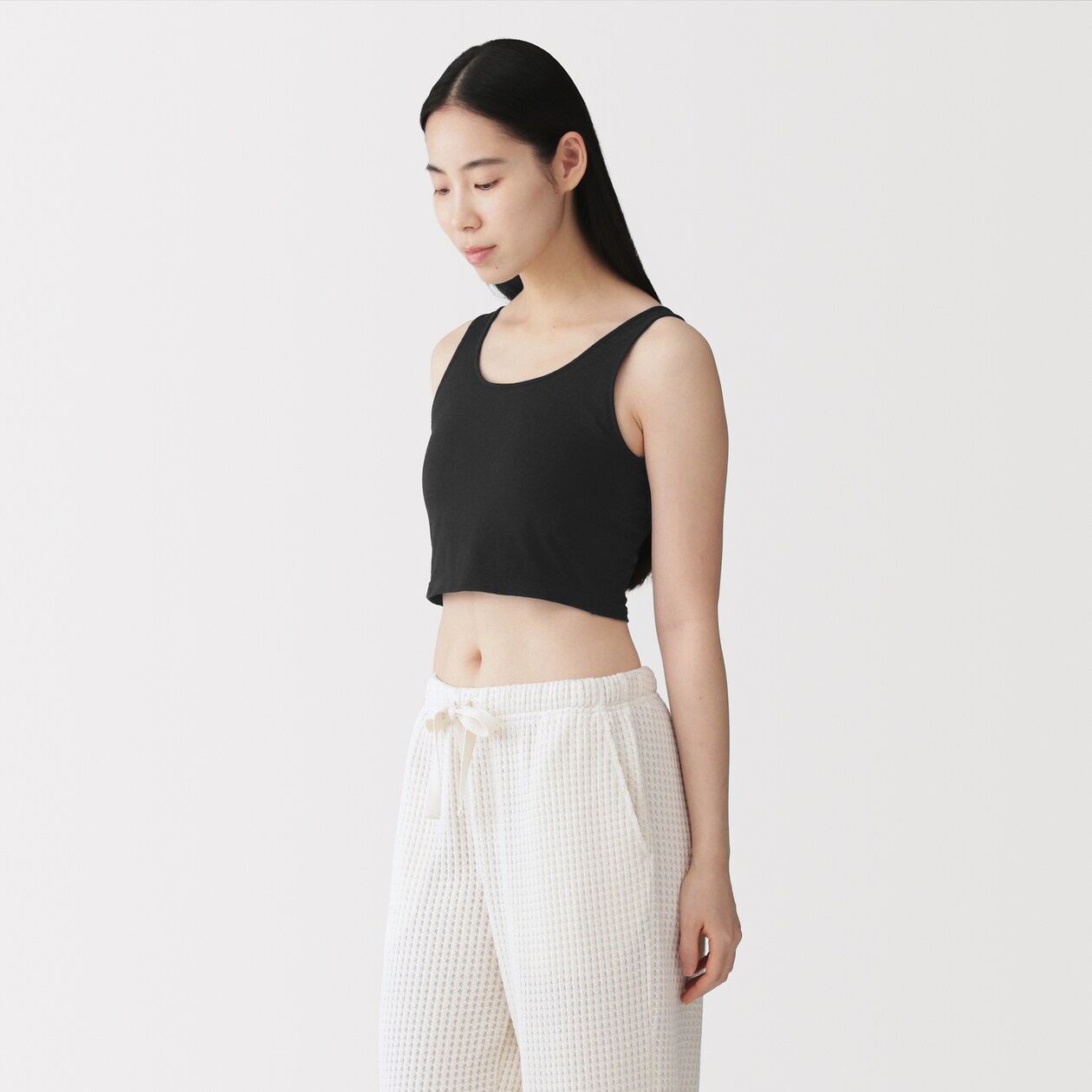 胸回りのパワーネットでバストのボリュームをおさえます。綿はオーガニックコットンです。