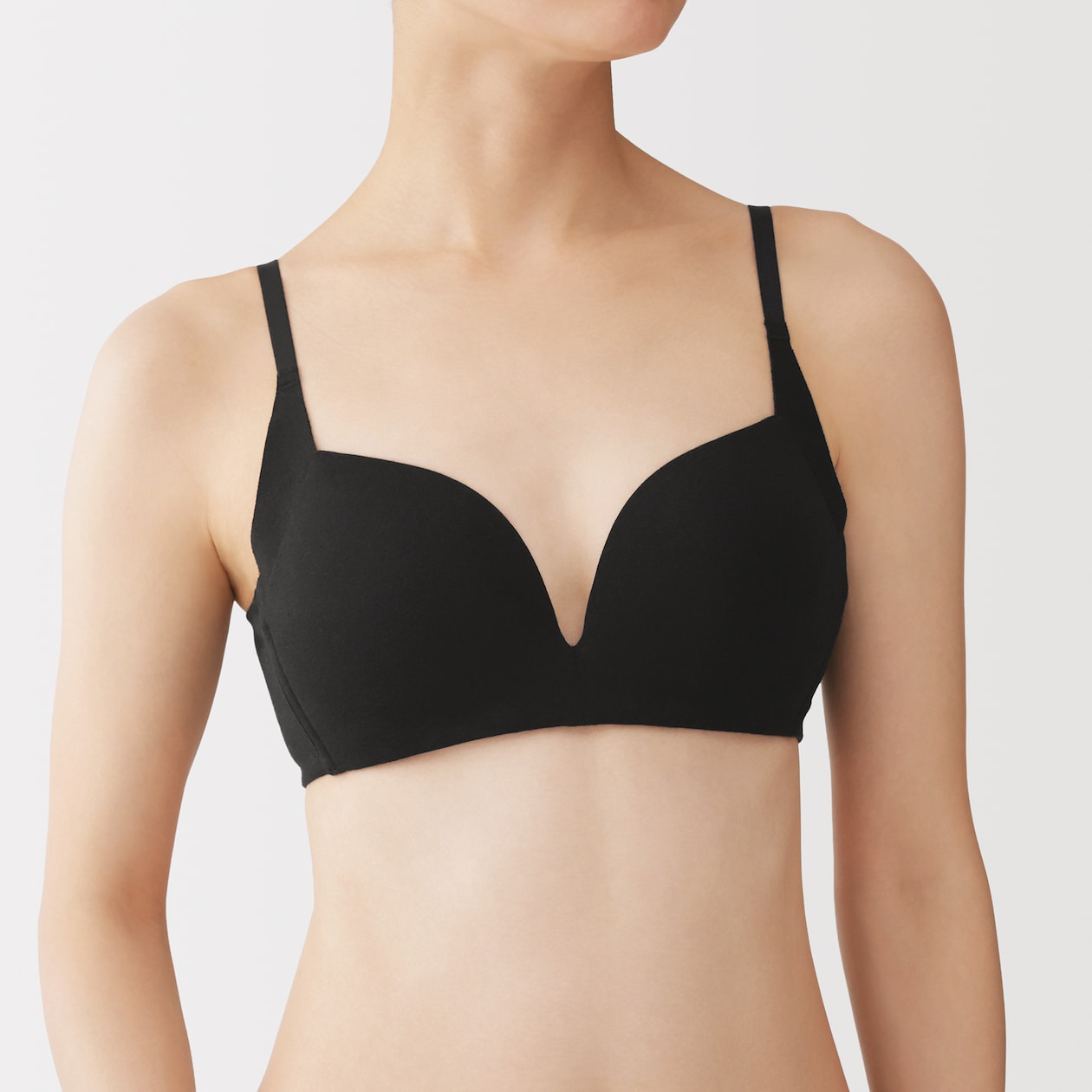 脇をサポートする一体型カップが脇から寄せ下から持ち上げます。綿はオーガニックコットンです。