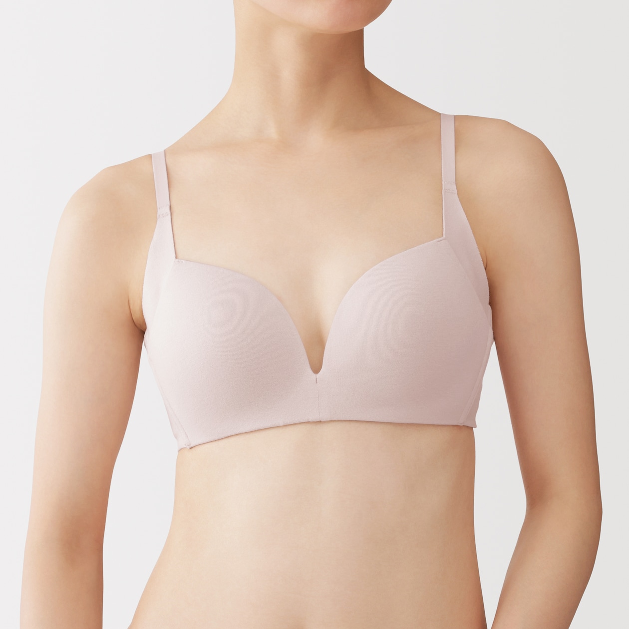 脇をサポートする一体型カップが脇から寄せ下から持ち上げます。綿はオーガニックコットンです。