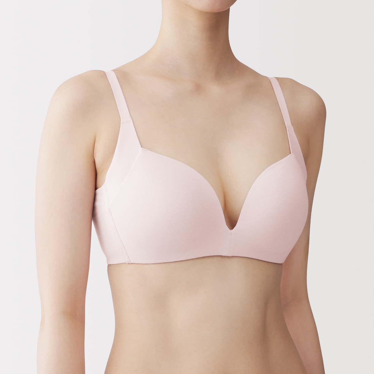 脇をサポートする一体型カップが脇から寄せ下から持ち上げます。綿はオーガニックコットンです。トップとアンダーの差が大きい方向けのサイズです。