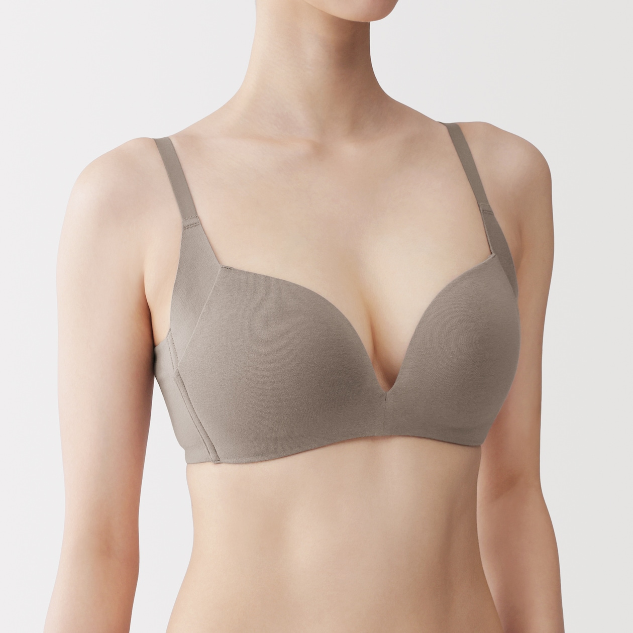 脇をサポートする一体型カップが脇から寄せ下から持ち上げます。綿はオーガニックコットンです。トップとアンダーの差が大きい方向けのサイズです。