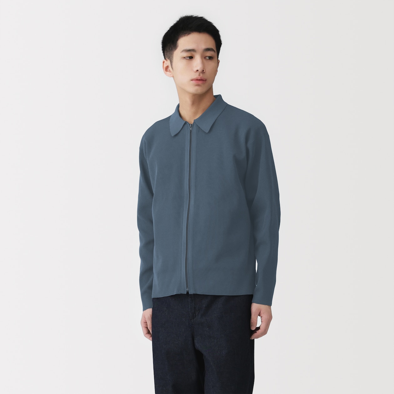 型崩れしにくく、適度なハリ感があるニットブルゾンです。洗濯後、乾きやすい素材です。