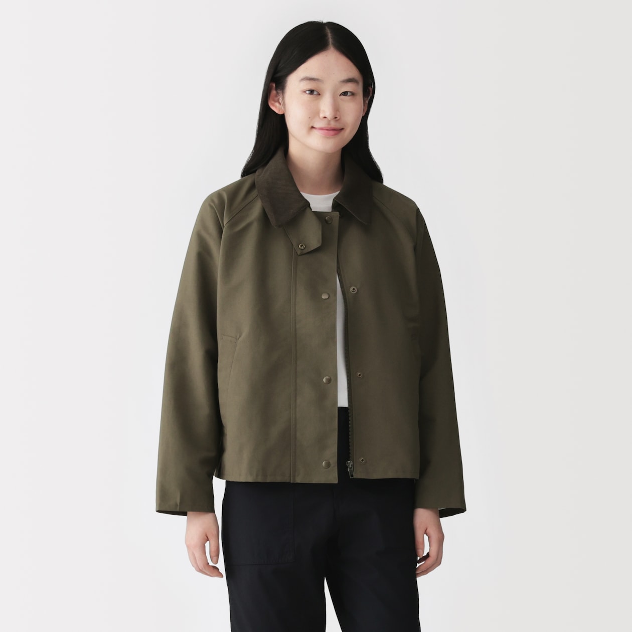 撥水・防風加工の表地を使いました。あたたかいコーデュロイ衿が特長です。