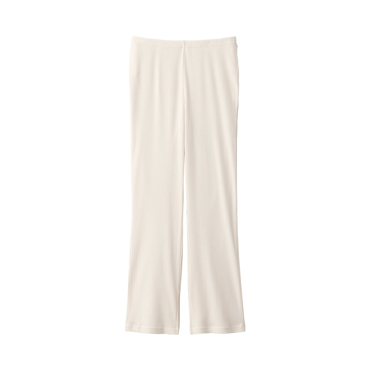 伸縮性のある生地で、なめらかな履き心地です。体のラインをひろいすぎないシルエットです。天然由来の再生繊維を使っています。
