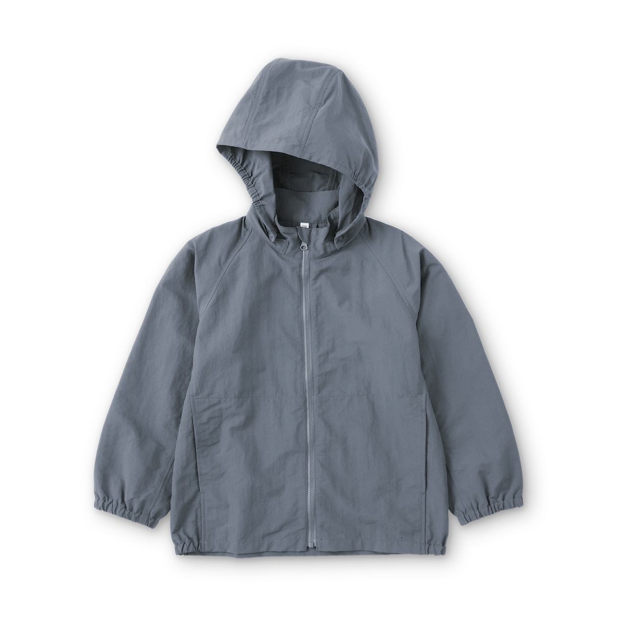 持ち運びしやすい程よい厚みの生地でつくったジャケットです。フードは取り外し可能です。