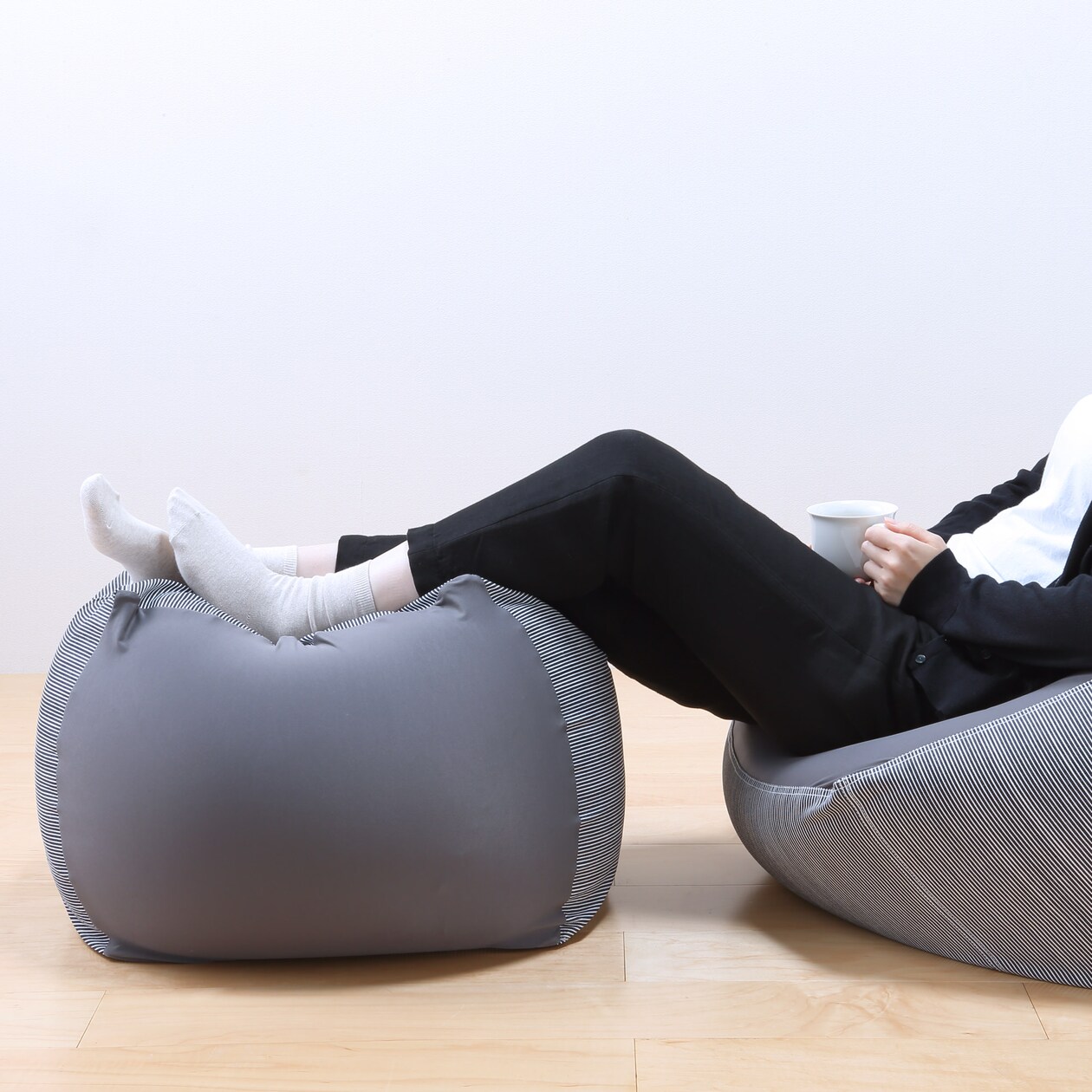 海外限定商品。コンパクトなサイズの体にフィットするソファです。コンパクトでも体に沿う形状です。本体とカバーのセットです。