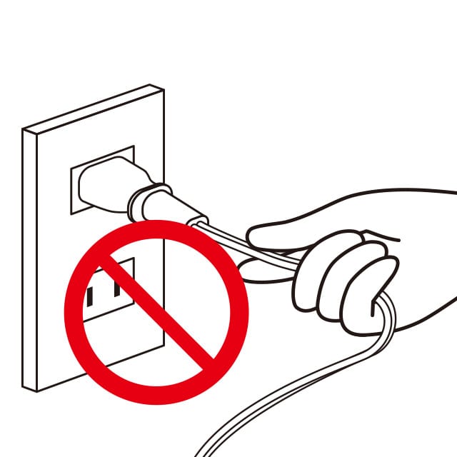 電源プラグを抜くときはコードを持たずに電源プラグを持って引き抜いてください。破損、感電や火災の原因となります。