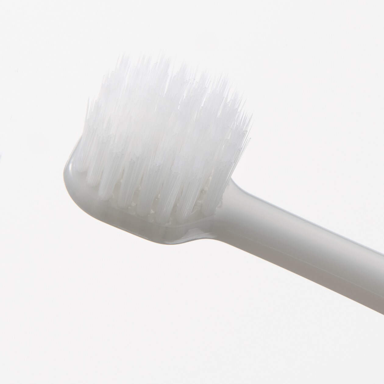 広い面のブラシでしっかり磨けるワイドヘッド。先端の形状が異なる2種の毛を使いました。 毛のかたさ:やわらかめ