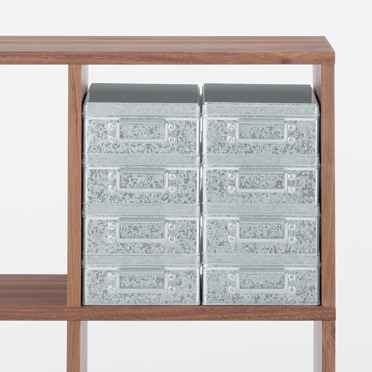 商品サイズ:約幅19×奥行27×高さ8.5cm 建築材料として使われる錆びにくく丈夫なトタンを使用しました。積み重ねてもズレにくい仕様で棚置きでもスペースを有効に使うことができます。外から中身がわかるよう持ち手部分に印を付けれるようにしました。