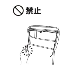 紐の結び目は引っ張らないでください。紐が緩むと、画面に挟まり、収納物が破損する可能性があります。
