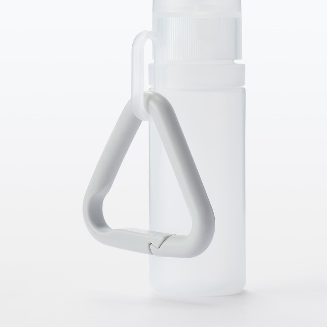 ローションなどの小分けに便利なワンタッチキャップボトルです。アルコールにも対応しています。携帯時に便利なカラビナ付きです。