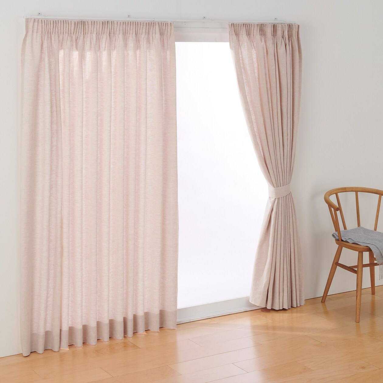 シャリ感・光沢感のあるリネンを100%使い、麻の自然な風合いを生かしました。天然素材のカーテンは、吊り下げていると自重で伸び、洗濯すると縮み、その後に吊り下げればまた伸びる、という事の繰り返しになります。そのため、伸縮が発生した場合は、アジャスターカーテンフックで長さを調整してください。