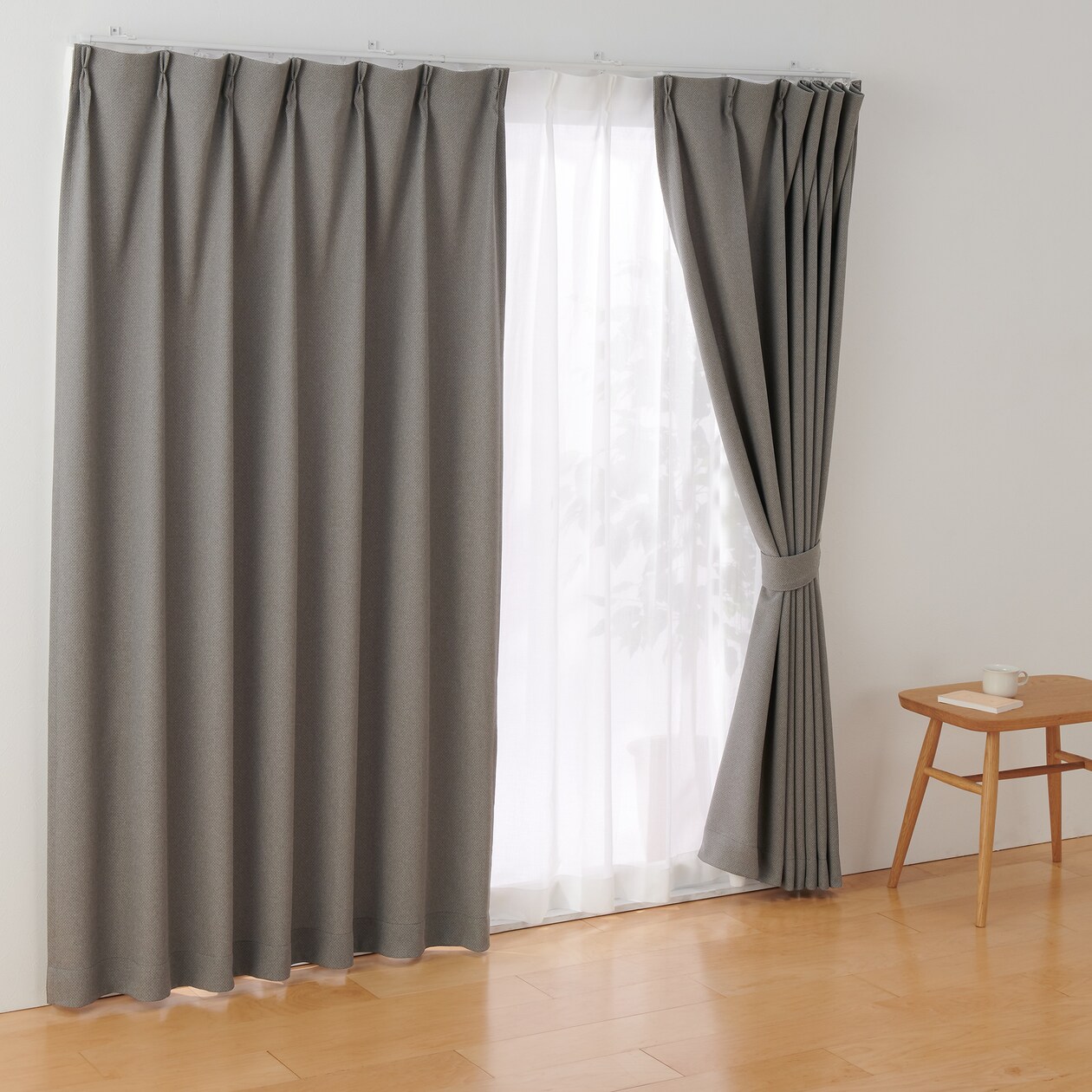 太さの違う糸を組み合わせて凹凸のある生地に織り上げました。お手入れのしやすいポリエステルです。防炎機能付き(1枚入り)