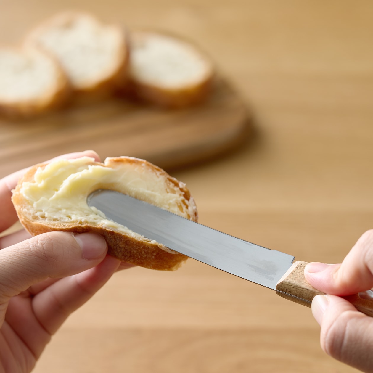 これ1本で切る、塗るができる食卓で便利なナイフです。バターが薄く塗れる、しなる刃が特長です。