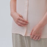 脱ぎ着しやすいよう体の前面で留める仕様です。綿はオーガニックコットンです。