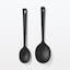 耐熱温度の高いシリコーン素材を使った、調理や取り分け時に役立つ調理スプーンです。先端の適度なしなりが鍋肌に沿い、食材を無駄なくすくい取ります。色は食材による色移りが目立ちにくいよう黒色にしています。