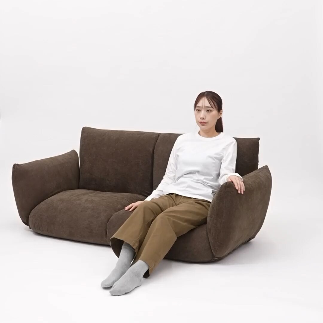 商品サイズ:幅154~218×奥行78~125×高さ24~63cm 背面18段階、肘部14段階のリクライニング機能がついたフロアソファです。クッション部にはウレタンを使用し、ほどよい硬さと適度な弾力のある座り心地を実現しました。見た目のふっくら感を追求し、カバーも優しい色味にしました。あらかじめカバーと本体をセットにし、カバー装着の手間を省きました。