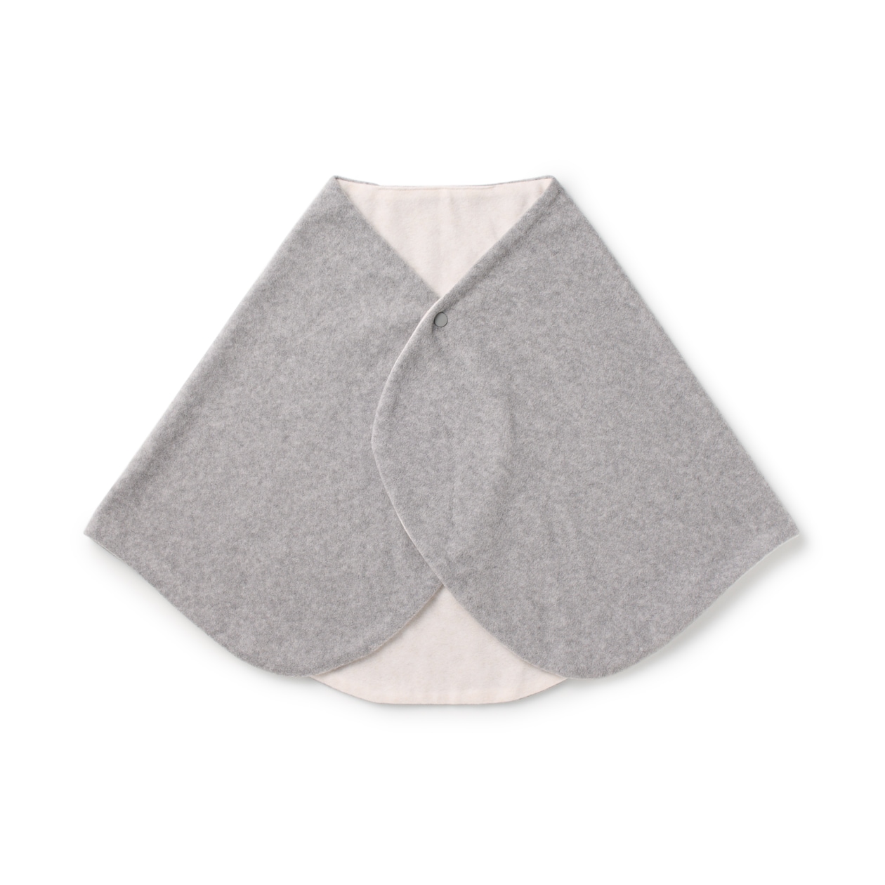 ユーカリを主原料としたリヨセルを使用した、なめらかであたたかな肌触りのフリース素材です。裏表が異なるカラーでリバーシブルで使えます。スナップボタン付きでずれにくい仕様です。
