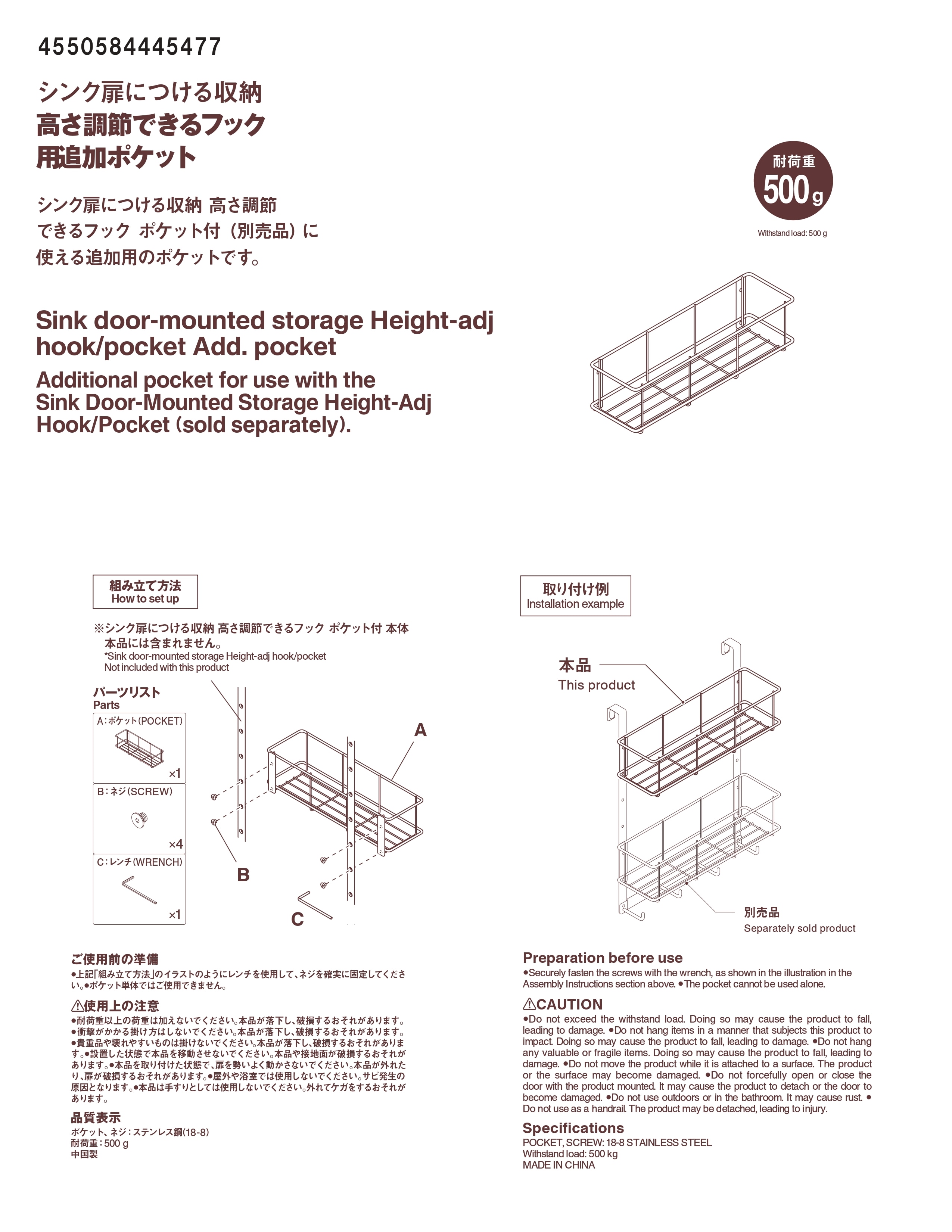 シンク扉につける収納用の追加ポケットです。組み合わせを変えて使うことができます。