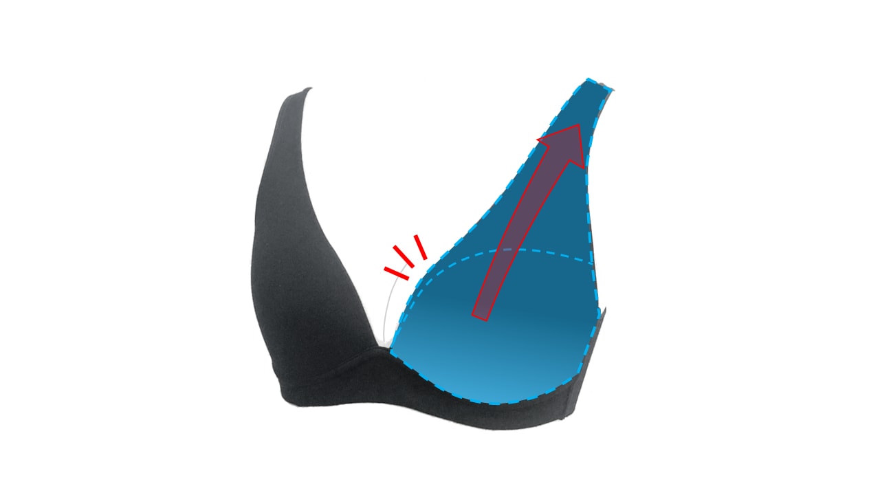 モールドカップを覆う綿混生地がバストを肩先まで引き上げるので、ホールド感があり胸に沿ってぱかぱかしにくい構造です