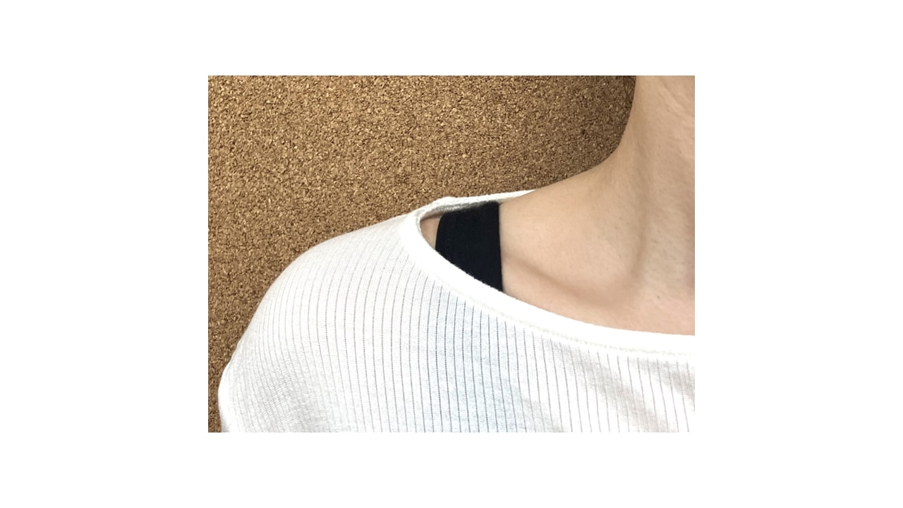 ストラップ部分はタンクトップのようなアウターライクなデザインとカラーなので、首元からはみ出しても下着見えしません。