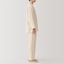 糸の太さを細くし、織り込まれている本数を増やすことで、繊細で肌あたりのよい生地に見直しました。また、製品洗いからエアータンブラー加工に変更することで、ふんわり柔らかな風合いに仕上げながら、1着あたり水1リットル分の使用量削減にもつなげています。着る人にとっても環境にとっても良い商品になりました。