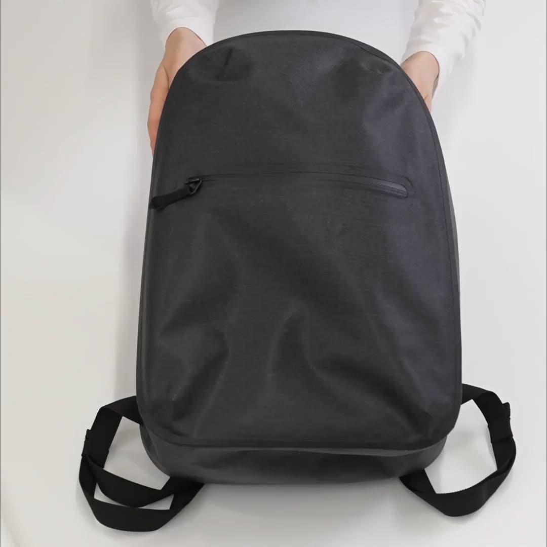 耐水生地を使用したリュックサックです。生地を縫い合わせずに接着させるウェルダー加工※を多く使っている為、水に濡れても中に滲みにくいです。PC収納ポケットを内装し、キャリーオン出来るベルト付きです。生地は再生ポリエステルを使用しています。※ウェルダー加工:生地に前もって加工した熱可塑性樹脂を高周波誘振動を与えることで加熱し溶着する加工のことを指しています。外部の熱源を使用しないため、熱にムラが生じにくく短時間で安定した溶着加工が可能です。また、縫製と比べて水が入りにくい特徴があります。