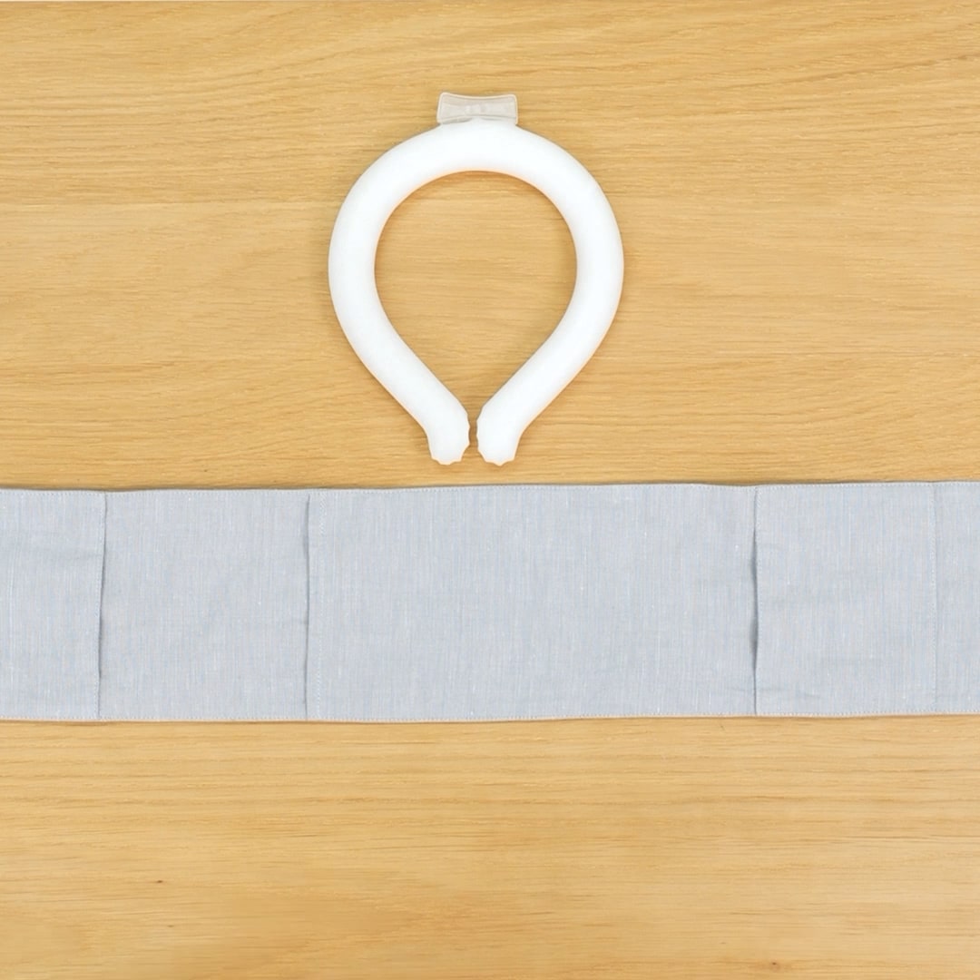 さらっとしながらも綿の肌あたりのよいヘンプコットン生地です。内側に無印良品のネッククーラーや市販の保冷剤を入れられ首元を涼めます。
