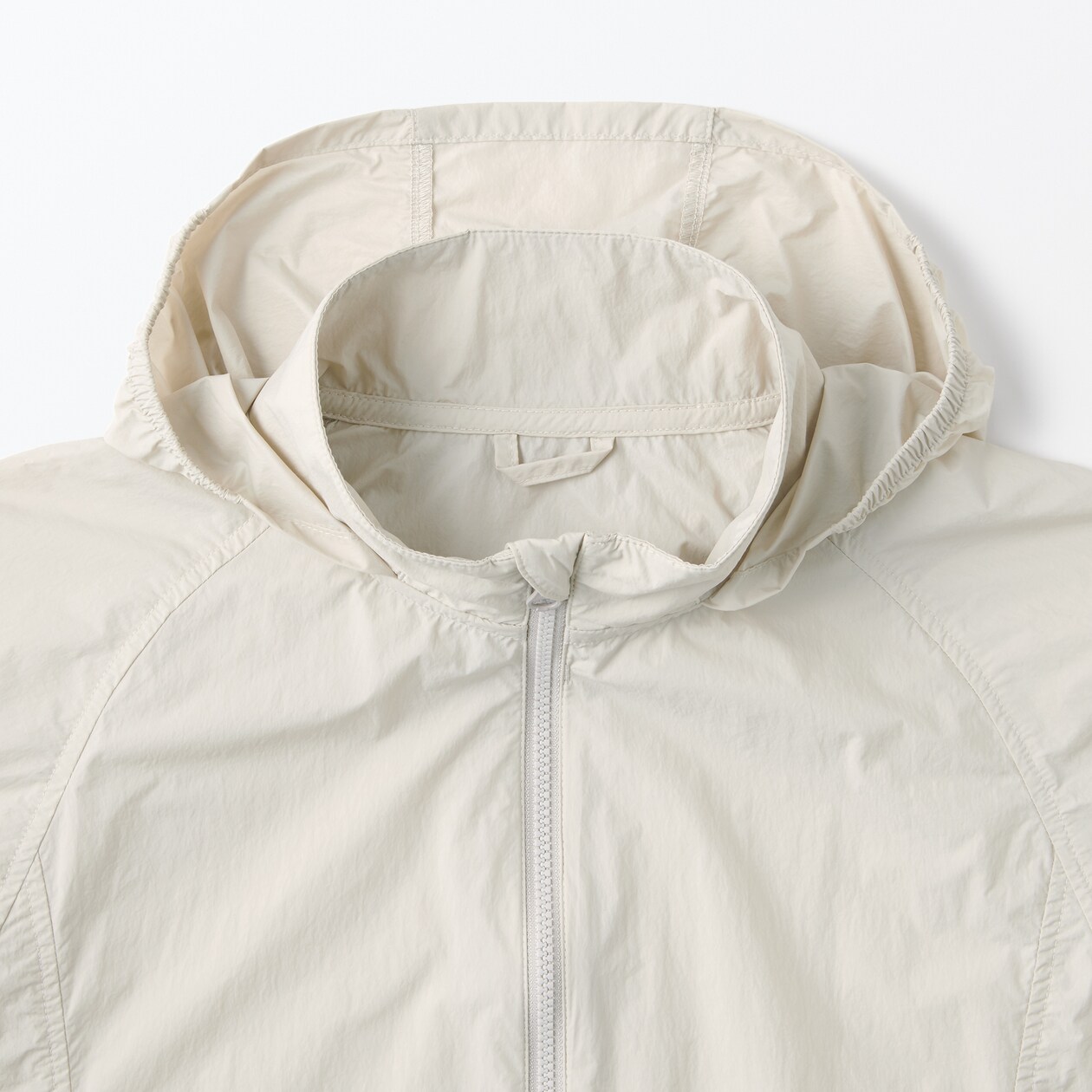 防風性撥水性のある軽量素材で、スナップ付きの左ポケットに収納できます。持ち運びにも便利です。