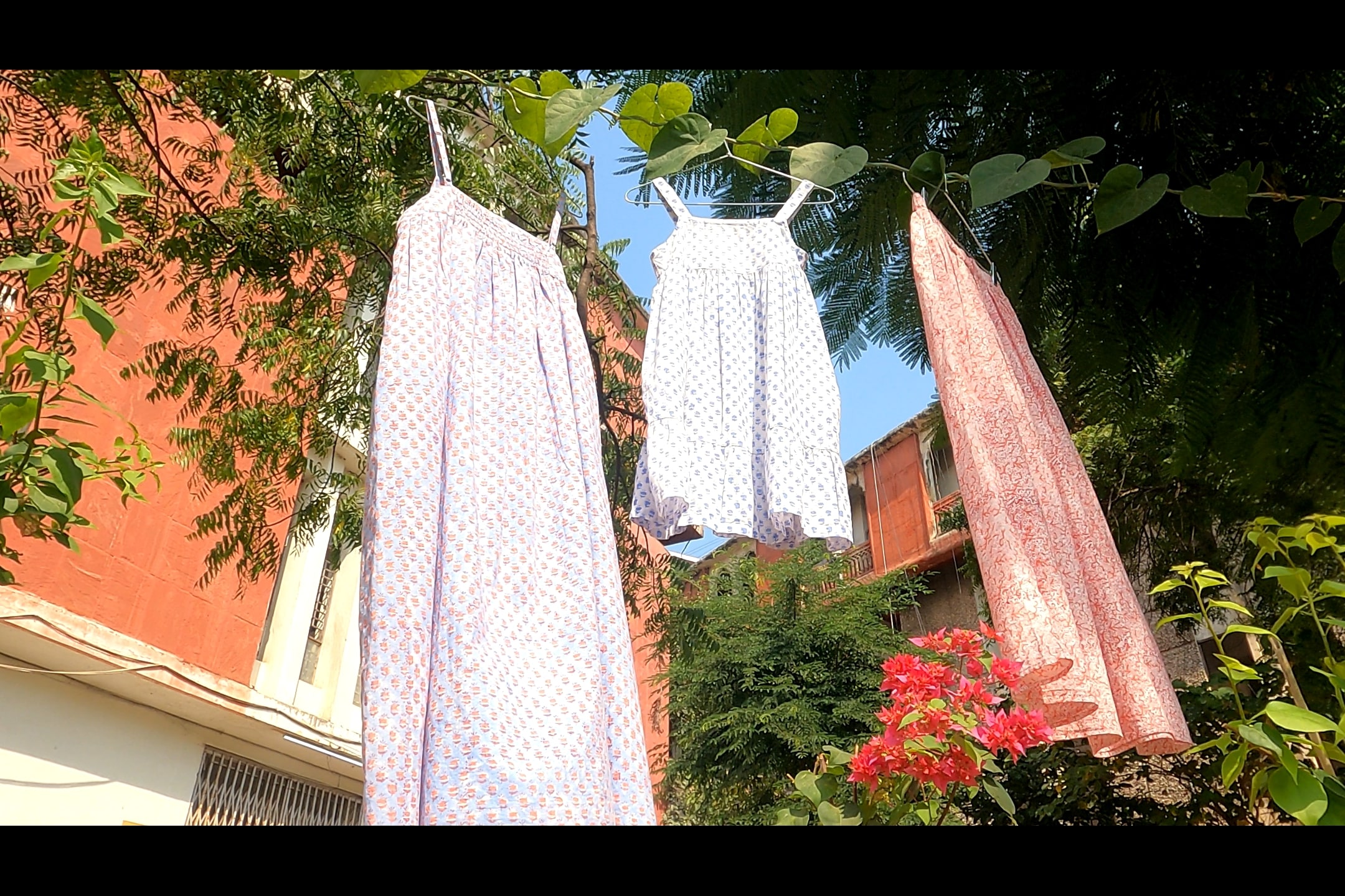 インドで生まれた、伝統柄をもちいた風通しのよい素材です。綿はオーガニックコットンです。