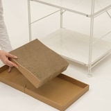 2枚の段ボール板を組み替えるだけで、「山型」と「谷型」の形状に切り替え可能。活動的なときは山型でしっかり研ぎ、リラックスタイムには谷型でくつろげるベッドに。シーンに合わせて使い分けられます。