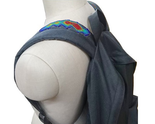 肩紐の外側が内側に対して厚くなるように芯材に高低差をつけました。肩紐幅全体が肩に接することで荷重が分散し「肩の負担を軽くする」効果を得られます。 *特許第6445744号:リュックサック用肩紐及びそれを備えたリュックサック