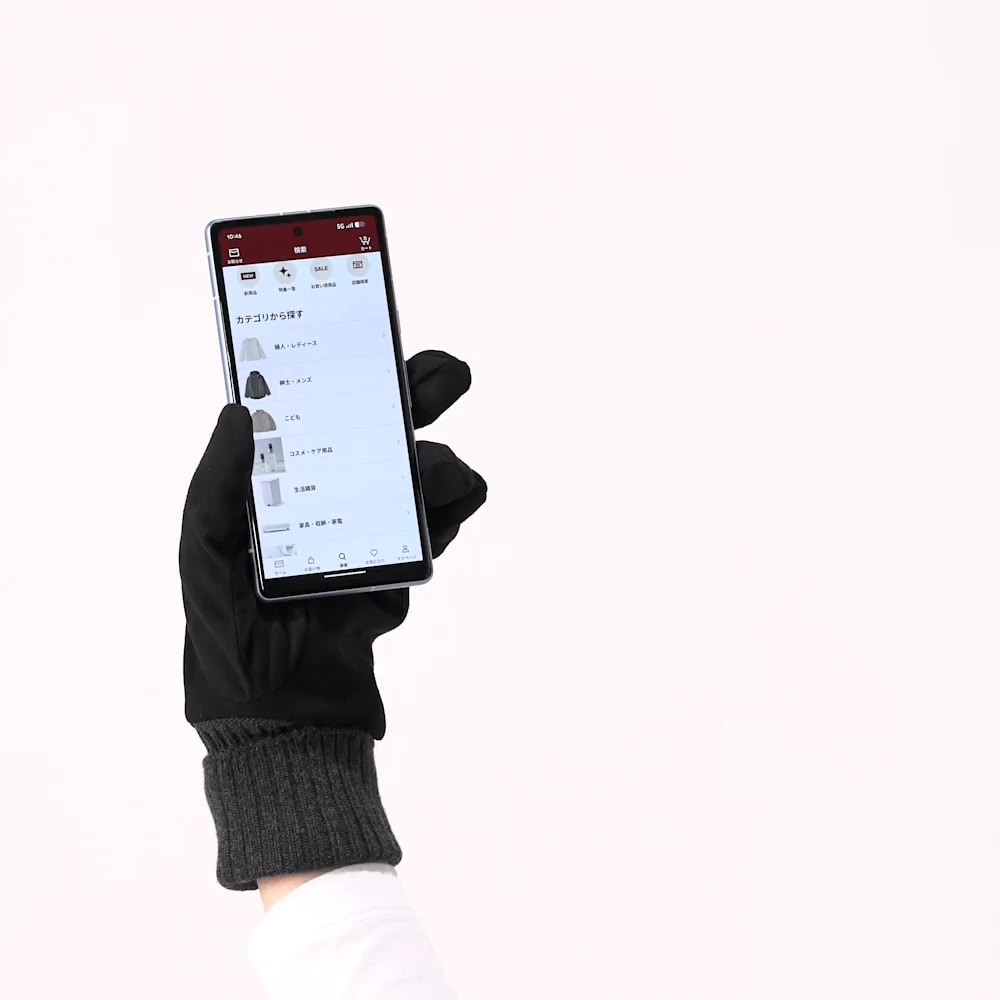 撥水加工の表地の下に防風シートを使用。手袋の内側のボアを増やすことで、より温かく感じられるようアップデートしました。手首のリブは伸ばしても使えます。タッチパネル対応です。