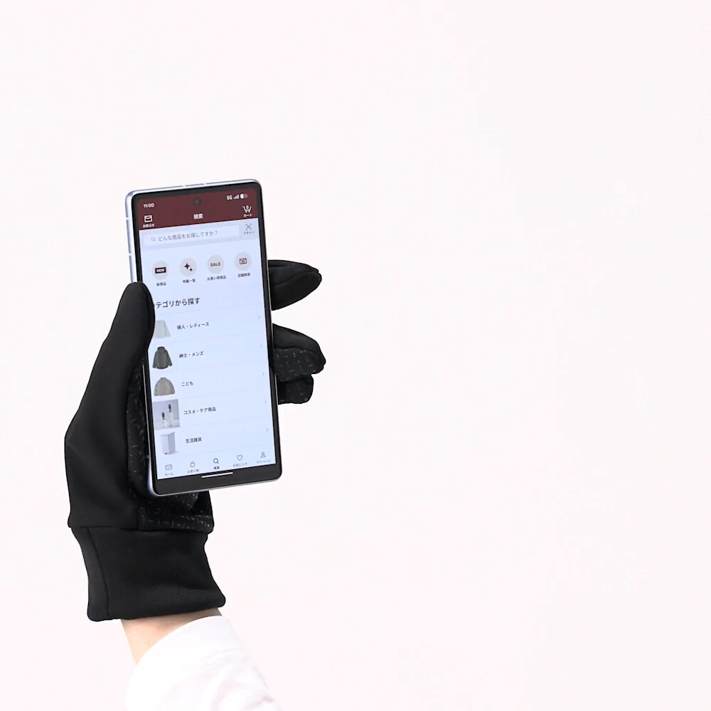 手の甲部分に防風、手のひら側は伸縮性のある生地を使用。着脱しやすく、物を持ちやすい滑り止めを付けました。