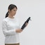 UVカット率90%以上の生地。重量約195g。親骨本数6本。長傘のように親骨を伸ばしたままでも折りたたんでも畳めます。畳む際の留めテープは右左どちらからでも留められます。折りたたみサイズ全長約56cm、34cmの2通りに対応の傘袋付きです。環境配慮型(フッ素フリー)の撥水加工を施しています。