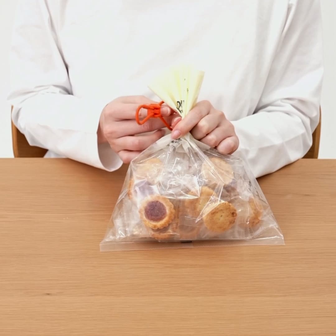 留め位置を固定できるゴムバンドです。コードなどをしっかりまとめたい時と、袋の口などをさっと閉じたい時で留め方を変えて、二通りの留め方ができます。